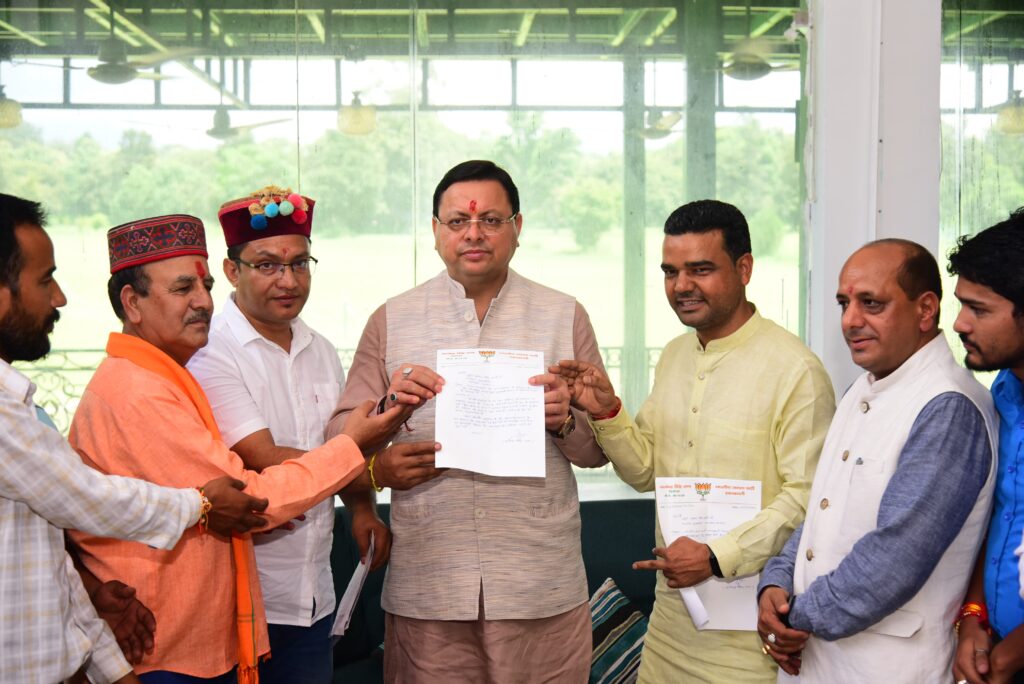 देहरादून। मुख्यमंत्री पुष्कर सिंह धामी से रविवार को जी.टी.सी हेलीपैड, देहरादून में पुरोला विधानसभा से आए प्रतिनिधि मंडल ने मुलाकात की। इस अवसर पर प्रतिनिधि मंडल ने राज्य सरकार द्वारा जनपद उत्तरकाशी के सर बडियार/सरनौल – सौत्तरी से सरूताल तक ट्रेक को ट्रेक ऑफ द ईयर घोषित किए जाने पर मुख्यमंत्री का आभार व्यक्त किया। विधायक पुरोला दुर्गेश्वर लाल ने मुख्यमंत्री का आभार व्यक्त करते हुए कहा कि सर-बडियार/सरनौल – सौत्तरी से सरूताल तक ट्रेक को ट्रेक ऑफ द ईयर घोषित किए जाने के बाद पुरोला क्षेत्र को नई पहचान मिलेगी। इससे क्षेत्र में रोजगार के अवसर पैदा होंगे एवं ट्रैक मार्ग पर पर्यटकों एवं ट्रैक्टर्स की संख्या बढ़ेगी। ट्रेक ऑफ द ईयर घोषित होने से क्षेत्र में बुनियादी विकास सुविधाओं को भी विकसित किया जाएगा एवं ग्रामीण क्षेत्रों से पलायन रुकेगा, जिससे क्षेत्र के लोग काफी उत्साहित हैं। भाजपा जिला अध्यक्ष ( उत्तरकाशी) सतेंद्र सिंह राणा ने कहा कि मुख्यमंत्री श्री पुष्कर सिंह धामी, उत्तरकाशी के विकास के लिए हमेशा अग्रसर रहते हैं। उत्तरकाशी जिले में ट्रेक ऑफ द ईयर घोषित होने से क्षेत्र के विकास को नई मजबूती मिलेगी। इससे उत्तरकाशी क्षेत्र में पर्यटन गतिविधियों को बढ़ावा मिलेगा एवं दूरस्थ क्षेत्र में सुविधाओं का विस्तार होगा। बड़ी संख्या में ट्रैकर्स के आने पर क्षेत्र के युवा होमस्टे एवं स्वरोजगार को अपना कर उत्तरकाशी के साथ ही राज्य की आर्थिकी को मजबूत करेगें। इस दौरान भाजपा प्रदेश मीडिया प्रभारी मनवीर सिंह चौहान, धर्मवीर ज्याडा, अरविंद ज्याडा, कैलाश रावत, जगवीर सिंह रावत, चिरंजीव सेमवाल एवं अन्य लोग उपस्थित रहे।