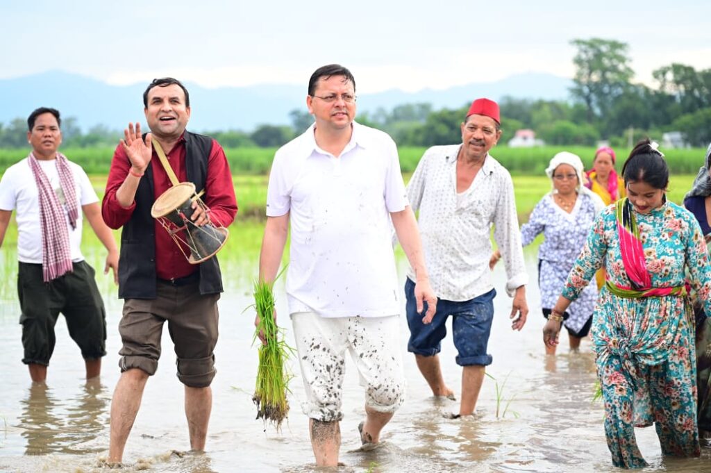 रुद्रपुर। खटीमा के नगरा तराई क्षेत्र में उत्तराखंड के मुख्यमंत्री पुष्कर सिंह धामी ने आज अपने खेत में धान की रोपाई कर किसानों के परिश्रम, त्याग और समर्पण को नमन किया। उन्होंने कहा कि खेतों में उतरकर पुराने दिनों की यादें ताजा हो गईं। मुख्यमंत्री ने कहा कि अन्नदाता न केवल हमारी अर्थव्यवस्था की रीढ़ हैं, बल्कि वे हमारी संस्कृति और परंपराओं के संवाहक भी हैं। इस मौके पर मुख्यमंत्री ने उत्तराखंड की समृद्ध सांस्कृतिक विरासत “हुड़किया बौल” के माध्यम से भूमि के देवता भूमियां, जल के देवता इंद्र और छाया के देवता मेघ की वंदना भी की। मुख्यमंत्री के इस सांस्कृतिक जुड़ाव और कृषकों के साथ आत्मीय सहभाग ने क्षेत्रीय जनता को गहरे स्तर पर प्रेरित किया। मुख्यमंत्री धामी की यह पहल उत्तराखंड की ग्रामीण संस्कृति, कृषकों की अहमियत और पारंपरिक लोककलाओं के संरक्षण की दिशा में एक प्रेरणादायक कदम है।