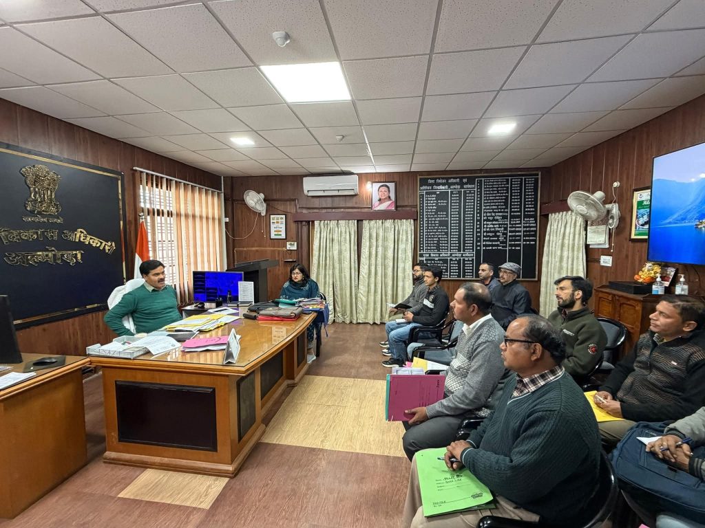 अल्मोड़ा। मुख्य विकास अधिकारी रामजी शरण शर्मा की अध्यक्षता में विकास भवन सभागार में आधार कार्ड बनाए जाने एवं अद्यतन कार्यों के संबंध में एक महत्वपूर्ण बैठक आयोजित की गई। बैठक में मुख्य विकास अधिकारी द्वारा कहा गया कि आधार कार्ड प्रत्येक नागरिक के लिए एक आवश्यक दस्तावेज है, अतः सभी पात्र व्यक्तियों का पंजीकरण एवं अद्यतनीकरण कार्य समयबद्ध रूप से पूर्ण किया जाना सुनिश्चित करें। उन्होंने यह भी अवगत कराया कि डाकघर (पोस्ट ऑफिस) के माध्यम से 5 वर्ष की आयु तक के बच्चों का निशुल्क आधार पंजीकरण कराया जा सकता है। इस संबंध में व्यापक जनजागरूकता अभियान चलाने पर भी बल दिया गया ताकि अधिक से अधिक लोग इस सुविधा का लाभ उठा सकें।बैठक में विभिन्न विभागों द्वारा अब तक किए गए कार्यों की समीक्षा की गई तथा आने वाले समय में कार्यप्रणाली को और अधिक प्रभावी बनाने हेतु आवश्यक दिशा-निर्देश प्रदान किए गए। मुख्य विकास अधिकारी ने स्पष्ट निर्देश दिए कि कोई भी पात्र व्यक्ति आधार पंजीकरण या अद्यतन से वंचित न रहे, इसके लिए प्रत्येक विभाग आपसी समन्वय स्थापित कर कार्य करें।