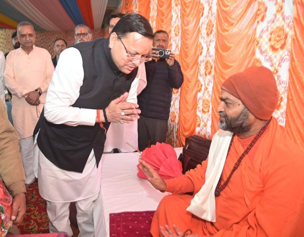 धामी ने अग्नि अखाड़े के महामंडलेश्वर से की शिष्टाचार भेंट