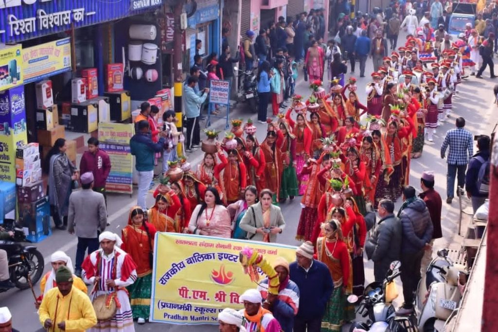 बागेश्वर। ऐतिहासिक उत्तरायणी मेले का शुभारंभ मंगलवार को पारंपरिक सांस्कृतिक झांकी के साथ उत्साहपूर्वक हुआ। झांकी को जिला पंचायत अध्यक्ष शोभा आर्या, विधायक पार्वती दास, सुरेश गढ़िया, दर्जा राज्यमंत्री शिव सिंह बिष्ट, भूपेश उपाध्याय, जिलाधिकारी आकांक्षा कोंडे, पुलिस अधीक्षक चंद्रशेखर आर. घोड़के, पालिकाध्यक्ष सुरेश खेतवाल, सहित अन्य जनप्रतिनिधियों ने हरी झंडी दिखाकर रवाना किया। झांकी में कुमाऊँनी वाद्य यंत्र ढोल-दमाऊं और छोलियारों ने जोश भर दिया, वहीं कलाकारों एवं स्कूली बच्चों ने स्थानीय लोकसंस्कृति के साथ देश के विभिन्न प्रांतों की सांस्कृतिक झलक प्रस्तुत की। झांकी तहसील परिसर से प्रारंभ होकर नुमाइशखेत मैदान में संपन्न हुई।झांकी की अगुवाई संस्कृति व विजय के प्रतीक ‘निषाण’ के साथ की गई। इसके पश्चात छोलियारों का दल, राबाइंका बागेश्वर की कलश यात्रा तथा विभिन्न विद्यालयों—न्यू सैनिक जूहा स्कूल, हिमालयन सेंट्रल स्कूल, राइंका मंडलसेरा, विवेकानंद विद्या मंदिर, महर्षि विद्या मंदिर बिलौना, आनंदी एकेडमी, सेंट जोजफ थूनाई, गायत्री विद्या मंदिर, हिमालयन चिल्ड्रन एकेडमी, कंट्रीवाइड पब्लिक स्कूल, सैनिक हाईस्कूल, सरस्वती शिशु मंदिर चौरासी, नेशनल मिशन स्कूल एवं राइंका सैलानी—के विद्यार्थियों ने विविध सांस्कृतिक प्रस्तुतियों व सामाजिक संदेशों के साथ सहभागिता की। जौहार सांस्कृतिक समिति तथा मदकोट का नगाड़ा भी आकर्षण का केंद्र रहा।