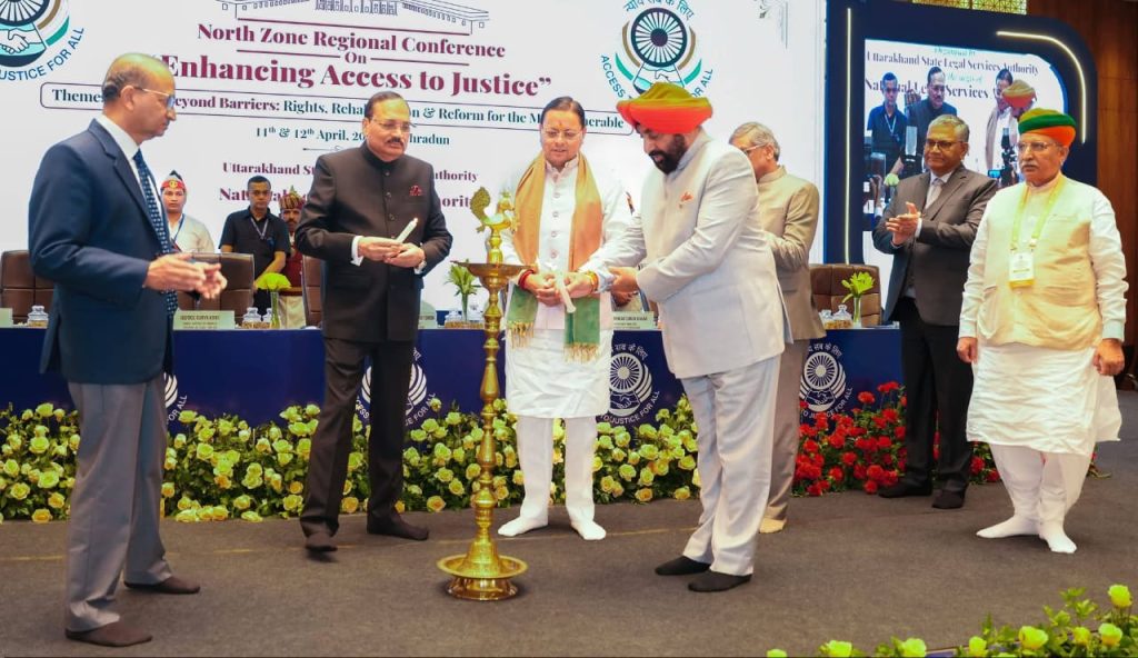 देहरादून। राष्ट्रीय विधिक सेवा प्राधिकरण (NALSA), नई दिल्ली के तत्वाधान में उत्तराखण्ड राज्य विधिक सेवा प्राधिकरण, नैनीताल द्वारा देहरादून में आयोजित दो दिवसीय नॉर्थ जोन रीजनल कॉन्फ्रेंस का आज समापन हुआ। इस वर्ष सम्मेलन का विषय “Enhancing Access to Justice” तथा मुख्य थीम “Justice Beyond Barriers: Rights, Rehabilitation & Reform for the Most Vulnerable” रही। सम्मेलन के समापन के अवसर पर राज्यपाल लेफ्टिनेंट जनरल गुरमीत सिंह (से.नि.), भारत के माननीय मुख्य न्यायाधीश एवं NALSA के संरक्षक प्रधान न्यायमूर्ति सूर्यकांत, मुख्यमंत्री पुष्कर सिंह धामी, केन्द्रीय विधि एवं न्याय राज्य मंत्री (स्वतंत्र प्रभार) अर्जुन राम मेघवाल सहित उच्चतम न्यायालय एवं उत्तराखण्ड उच्च न्यायालय के माननीय न्यायमूर्तिगण, उत्तर भारत के विभिन्न उच्च न्यायालयों से पधारे माननीय न्यायमूर्तिगण और विधि विशेषज्ञों ने प्रतिभाग किया। कार्यक्रम के शुभारंभ पर उत्तराखण्ड उच्च न्यायालय के माननीय मुख्य न्यायाधीश श्री मनोज कुमार गुप्ता द्वारा स्वागत संबोधन प्रस्तुत किया गया तथा विभिन्न गणमान्य अतिथियों को स्मृति चिन्ह भेंट कर सम्मानित किया गया। सम्मेलन में उत्तराखण्ड राज्य के जिला विधिक सेवा प्राधिकरणों के अध्यक्ष, सचिव एवं न्यायिक अधिकारियों ने सहभागिता की। इस दौरान विभिन्न तकनीकी सत्रों के माध्यम से न्याय तक पहुँच को सशक्त बनाने, वंचित वर्गों के अधिकारों के संरक्षण तथा न्याय प्रणाली को अधिक प्रभावी एवं सुलभ बनाने पर व्यापक विचार-विमर्श किया गया। सम्मेलन के दौरान वन अधिकार अधिनियम, 2006 के प्रभावी क्रियान्वयन, जेल सुधार, विचाराधीन बंदियों के अधिकार, एसिड अटैक पीड़ितों के पुनर्वास एवं महिलाओं व बच्चों के विधिक अधिकारों जैसे महत्वपूर्ण विषयों पर विस्तृत चर्चा की गई। इस अवसर पर भारत के मुख्य न्यायाधीश द्वारा “न्याय मित्र पोर्टल” का शुभारंभ किया गया, जिससे आमजन ऑनलाइन शिकायत दर्ज कर त्वरित न्याय प्राप्त कर सकेंगे। NALSA के कार्यकारी अध्यक्ष न्यायमूर्ति विक्रम नाथ द्वारा ई-बुकलेट का विमोचन भी किया गया। मुख्यमंत्री पुष्कर सिंह धामी ने अपने संबोधन में कहा कि न्याय व्यवस्था की वास्तविक सफलता तभी सुनिश्चित होती है, जब न्याय समाज के अंतिम छोर पर खड़े व्यक्ति तक समयबद्ध रूप से पहुंचे। उन्होंने “जस्टिस बियॉन्ड बैरियर्स” की अवधारणा को रेखांकित करते हुए स्पष्ट किया कि न्याय प्राप्ति की प्रक्रिया को सरल बनाने के साथ-साथ उससे जुड़ी सभी बाधाओं को दूर करना आवश्यक है। उन्होंने सम्मेलन के विषय को अत्यंत प्रासंगिक बताते हुए कहा कि आदिवासी समुदायों की सुरक्षा, पर्यावरण संरक्षण, एसिड अटैक पीड़ितों के पुनर्वास, महिलाओं एवं बच्चों की सुरक्षा तथा कारागार सुधार जैसे विषयों पर गंभी