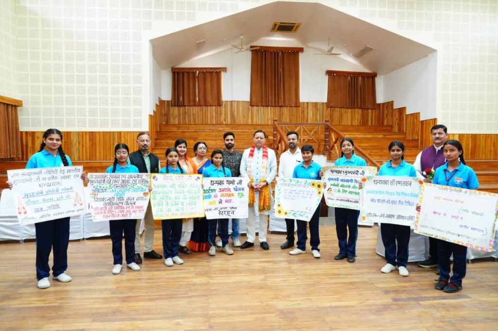देहरादून। मुख्यमंत्री पुष्कर सिंह धामी से आज मुख्यमंत्री कैंप कार्यालय में जन जागरण अभियान समिति के तत्वाधान में विभिन्न विद्यालयों की छात्राएं मिलीं। उन्होंने राज्य सरकार द्वारा संचालित 15 उत्कृष्ट योजनाओं पर आधारित आकर्षक पोस्टर तैयार कर मुख्यमंत्री के समक्ष प्रस्तुत किए। छात्राओं ने इन योजनाओं के माध्यम से समाज के विभिन्न वर्गों को मिल रहे लाभ के प्रति आभार व्यक्त किया। मुख्यमंत्री ने छात्राओं के प्रयासों की सराहना करते हुए कहा कि इस प्रकार की रचनात्मक गतिविधियां न केवल विद्यार्थियों में जागरूकता बढ़ाती हैं, बल्कि उन्हें समाज और शासन से जुड़े विषयों के प्रति संवेदनशील भी बनाती हैं।