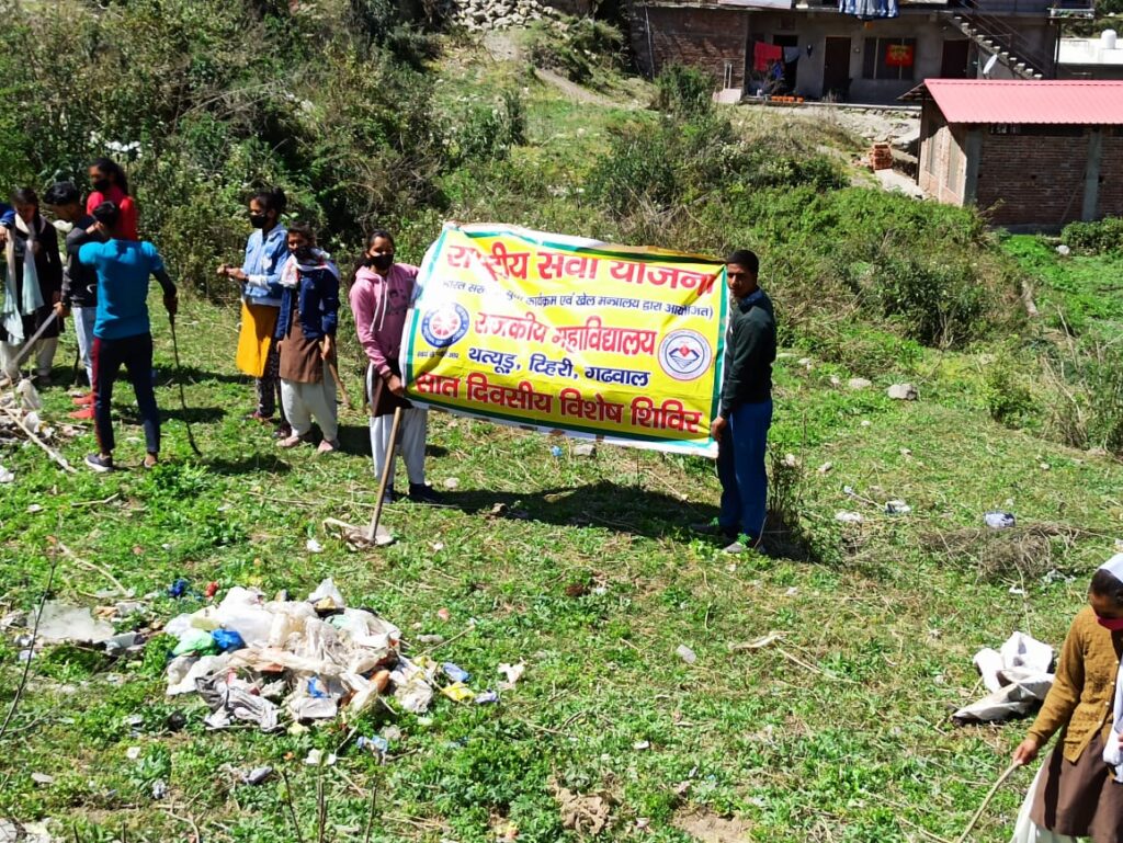 राजकीय महाविद्यालय थतयूड टिहरी गढ़वाल की राष्ट्रीय सेवा योजना इकाई द्वारा संचालित सात दिवसीय विशेष शिविर के तीसरे दिन का प्रारंभ कार्यक्रम अधिकारी संदीप कश्यप के निर्देशन मे सरस्वती शिशु मंदिर प्रांगण की सफाई के साथ किया इसके पश्चात छात्र छात्राओं ने शरीरिक विकास के लिए प्रातः कालीन व्यायाम और योगाभ्यास किया इसके पश्चात छात्रों ने राष्ट्रगान और और राष्ट्रीय सेवा योजना के लक्ष्य गीत के साथ दिन की शुरुआत की और पूर्व नियोजित कार्यक्रम के अंतर्गत स्वयंसेवी ने थतयूड ढाना मार्ग पर स्वच्छता अभियान चलाया तथा मुख्य मार्ग के आसपास से झाड़ियों का कटान और सड़क पर अनियंत्रित रूप से बिखरी हुई लगभग 25 किलो किलो सिंगल यूज प्लास्टिक का एकत्रीकरण एवं निस्तारण किया स्वयंसेवी छात्रों के द्वारा किया गया स्वच्छता अभियान के पश्चात छात्रों ने ग्रामीणों को सिंगल यूज प्लास्टिक के नुकसान और पर्यावरण प्रदूषण में उसकी भूमिका के बारे में समझाया और उन्हें सिंगल यूज प्लास्टिक का उपयोग ना करने का और मेरा कचरा मेरी जिमेदारी का संकल्प दिलाया द्वितीय सत्र के अंतर्गत बौद्धिक सत्र के अंतर्गत छात्रों ने वन विभाग कि जौनपुर रेंज इकाई का भ्रमण किया और वन विभाग के मनवीर सिंह पवार व अधिकारियों से वन्य जीव सुरक्षा, जल संरक्षण के लिए महत्वपूर्ण पौधे, जैव विविधता और वन विभाग द्वारा स्थापित आर्थिक महत्व के लिए उपयोगी पौधशाला, तथा वनों के माध्यम से रोजगार सर्जन के विषय में महत्वपूर्ण जानकारियां तथा वनों में लगने वाली आग को रोकने के उपायों के बारे में विस्तृत जानकारियां हासिल की कार्यक्रम मे डा संगीता खड़वाल,शीतल बेलवाल, कृष्णा बेलवाल, शिवानी कुशलवान नीरज कुमार, सुमित, कौशल रावत आँचल अनुप्रिया प्रीति रंजीता प्राची महावीर प्रसाद ने विशेष सहयोग प्रदान किया।