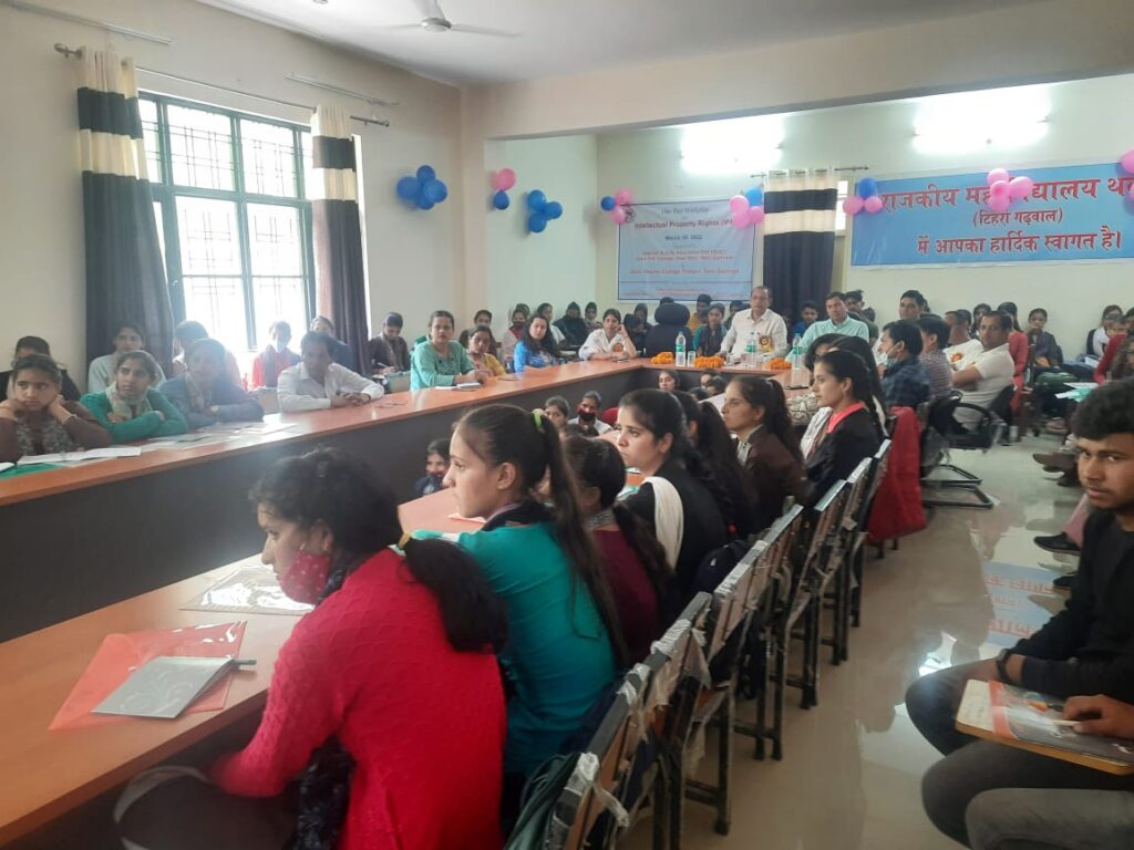 राजकीय महाविद्यालय थत्यूड़ की आई क्यू, ए ,सी सेल के तत्त्वधान मे यू काॅस्ट एवं राजकीय महाविद्यालय नई टिहरी द्वारा प्रायोजित बोद्धिक संपदा अधिकार विषय पर एक दिवसीय कार्यशाला का आयोजन डाॅ.पंकज पांडेय के निर्देशन में किया गया। कार्यशाला का शुभारंभ महाविद्यालय के प्राचर्य डॉ पंकज कुमार पांडेय , कोर्डिनेटर यू कोस्ट डाॅ.कुलदीप रावत और मुख्य वक्ता डाॅ. हेमलता बिष्ट , डाॅ. संजीव नेगी ने माँ सरस्वती के चित्र के सामने दीप प्रज्ज्वलित और पुष्पांजलि अर्पित कर किया इसके पश्चात् महाविद्यालय की छात्रा आँचल, श्वेता ने सरस्वती वंदना और स्वागत गीत प्रस्तुत किया डाॅ. संगीता कैन्तुरा ने संचालन करते हुए अथितियों का परिचय कराया और छात्रों ने बैच लगाकर सभी अतिथियों का स्वागत किया मुख्य वक्ता डाॅ. हेमलता बिष्ट ने बौद्धिक सम्पदा अधिकार के बारे मे विस्तार से बताया और कहा की कोई भी व्यक्ति अपने छोटे से छोटे अविष्कार, रचना, या अन्य प्रकार के सृजन को रजिस्टर करा कर आर्थिक लाभ अर्जित कर सकता है डाॅ. कुलदीप रावत ने यू कोस्ट द्वारा किये जा रहे अनुसंधान कार्य, कार्य प्रणाली के बारे मे बताया प्राचर्य ने यू कोस्ट के कॉर्डिनेटर डाॅ कुलदीप रावत और उनकी टीम का आयोजन के लिए आभार व्यक्त किया और डाॅ. संगीता सिदोला ने कार्यक्रम में प्रतिभागिता करने वाले सभी लोगों का धन्यवाद किया । गोष्ठी मे डाॅ.माधुरी कोहली, डाॅ. अरविंद रावत, डाॅ.आरती खंडूरी,डाॅ.अनिल कुमार, डाॅ. राजेश सिंह , डाॅ.संदीप कश्यप, डाॅ. संगीता खड़वाल, डाॅ.शीला बिष्ट, डाॅ.अखिल गुप्ता, डाॅ. बिट्टू सिंह, डाॅ.अंचला नोटियाल, डाॅ. रवि चंद्रा एवं अनुसेवकों में महावीर गौड़, तेगसिंह,व सुभाष उपस्थित रहे।