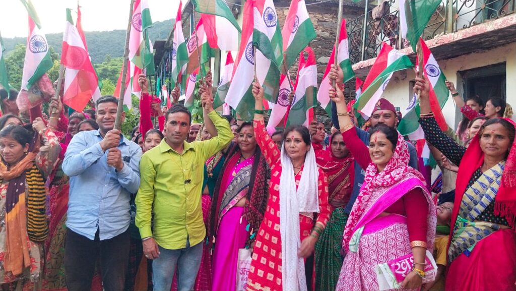 आजादी के अमृत महोत्सव के तहत हर घर तिरंगा कार्यक्रम विभिन्न स्थानों पर आयोजित किये जा रहे है। मुख्य बाजारों से लेकर गाँव की चौपालो तक देश भक्ति के गानो व गीतों से वातावरण देश भक्तिमय बना हुआ है। हर घर में तिरंगा लहराने से ग्रामीणों में भारी उत्साह बना हुआ है। शनिवार को ऊखीमठ में भाजपा कार्यकर्ताओं द्वारा हर घर तिरंगा अभियान की प्रदेश सह संयोजक एवं पूर्व विधायक आशा नौटियाल के नेतृत्व में मुख्य बाजार में रैली निकालकर तिरंगे झंडे वितरित किए गए। रैली के बाद कार्यकर्ताओं द्वारा तहसील परिसर स्थित शहीद स्तम्भ पर माल्यार्पण कर शहीदों को श्रद्धा सुमन अर्पित किये गये। इस मौके पर भाजपा नगर अध्यक्ष गजपाल रावत, नगर पंचायत अध्यक्ष विजय राणा, व्यापार मंडल अध्यक्ष राजीव भट्ट, प्रधान संगठन ब्लॉक अध्यक्ष सुभाष रावत,संरक्षक संदीप पुष्पवान, गुड्डी देवी, अरविंद रावत, नागेन्द्र राणा, दिनेश तिवारी,चन्द्रमोहन,कुंवर सिंह नेगी, मनोज नेगी, रेखा रावत,प्रकाश रावत, जगदीश लाल आदि मौजूद थे। पर्यटक गाँव सारी में भी हरिद्वार व दिल्ली के सैलानियों व ग्रामीणों द्वारा आजादी का अमृत महोत्सव सयुक्त रूप से मनाया गया। पूर्व सूचना अधिकारी गजपाल भटट् ने बताया कि आजादी के अमृत महोत्सव को लेकर सैलानियों व ग्रामीणों में भारी उत्साह देखने को मिल रहा है!केदारनाथ धाम में भी तीर्थ पुरोहित समाज,केदार सभा, मन्दिर समिति, पुलिस प्रशासन, व्यवस्थाओं में लगे अधिकारियों कर्मचारियों व तीर्थ यात्रियों द्वारा मानव श्रृंखला बनाकर तथा रैली निकालकर आजादी का अमृत महोत्सव हर्षोंउल्लास से मनाया गया। मन्दिर समिति कार्यधिकारी आर सी तिवारी व प्रशासनिक अधिकारी यदुवीर पुष्वाण ने बताया कि केदारनाथ धाम में आयोजित अमृत महोत्सव में सभी ने बढ़ – चढ़कर भागीदारी की। क्षेत्र पंचायत सदस्य करोखी उषा भटट् के नेतृत्व में भाजपा कार्यकर्ताओं द्वारा तुंगनाथ घाटी के विभिन्न हिल स्टेशनों पर तीर्थ यात्रियों, सैलानियों व ग्रामीणों को हर घर तिरंगा लगाने के लिए जागृत किया जा रहा है। दूसरी तरफ भाजपा चोपता मण्डल अध्यक्ष गम्भीर बिष्ट के नेतृत्व में विभिन्न गांवों में रैली निकालकर हर घर तिरंगा तथा आजादी के अमृत महोत्सव मनाने के लिए ग्रामीणों को प्रेरित किया जा रहा है! सीमान्त ग्राम पंचायत घिमतोली में प्रधान बसन्ती नेगी, क्षेत्र पंचायत सदस्य अर्जुन सिंह नेगी, पूर्व क्षेत्र पंचायत सदस्य मगन सिंह नेगी, सुरजी देवी, उप प्रधान प्रेम सिंह नेगी, बीरेन्द्र सिंह नेगी के नेतृत्व में ग्रामीणों द्वारा विभिन्न तोको में तिरंगा यात्रा निकालकर हर घर तिरंगा के लिए ग्रामीणों को सजग किया गया। रैली में पांच दर्जन से अधिक ग्रामीणों ने भाग लिया।